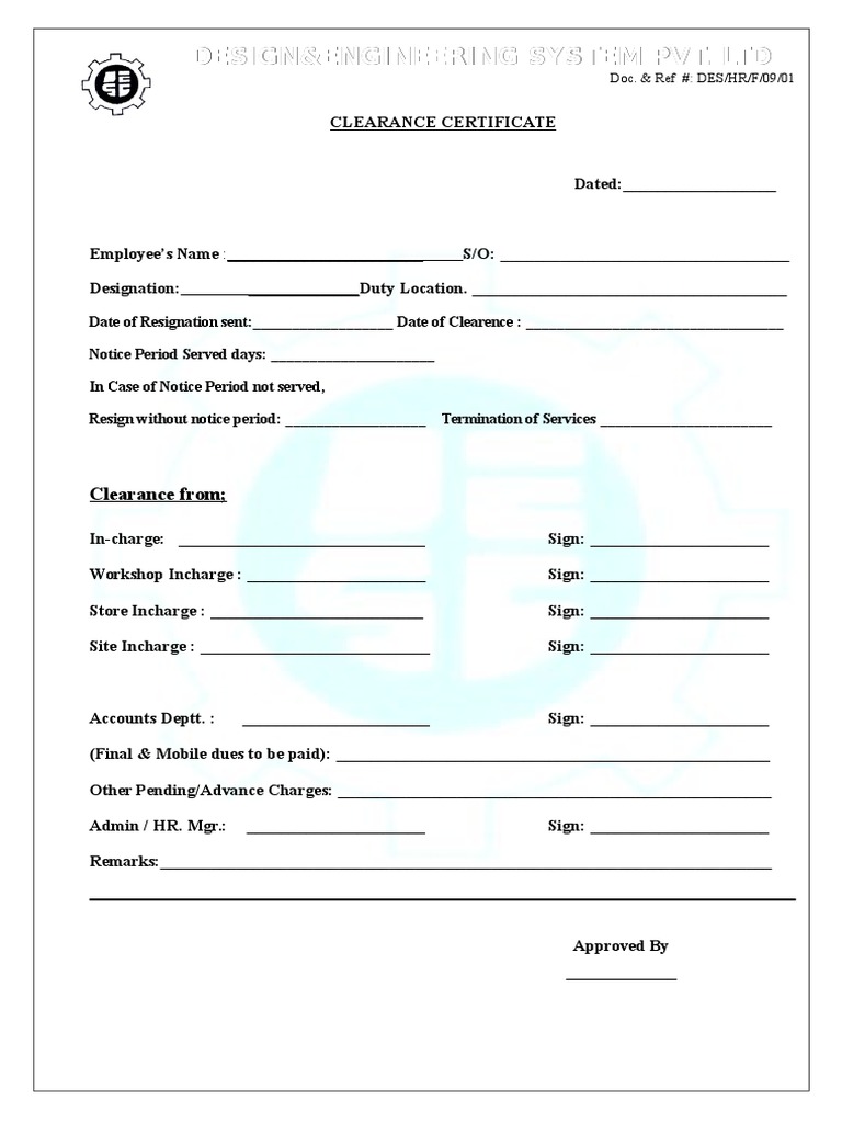Employment Format : Employee Clearance Form - A certificate of employment, also called an employment certificate, is used to verify the employment history of a former or current employee.